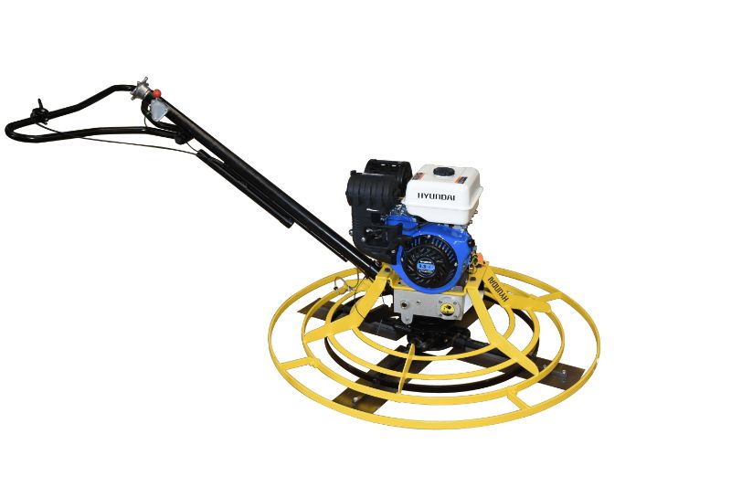 Allanadora Hyundai con motor a gasolina de 4 tiempos HYUNDAI contiene 4 cuchillas con un diámetro de 117 cms. Ideales para dar el acabado de pisos donde se requiere planicidad y terminados profesionales. Las allanadoras se utilizan para obras pequeñas y medianas.