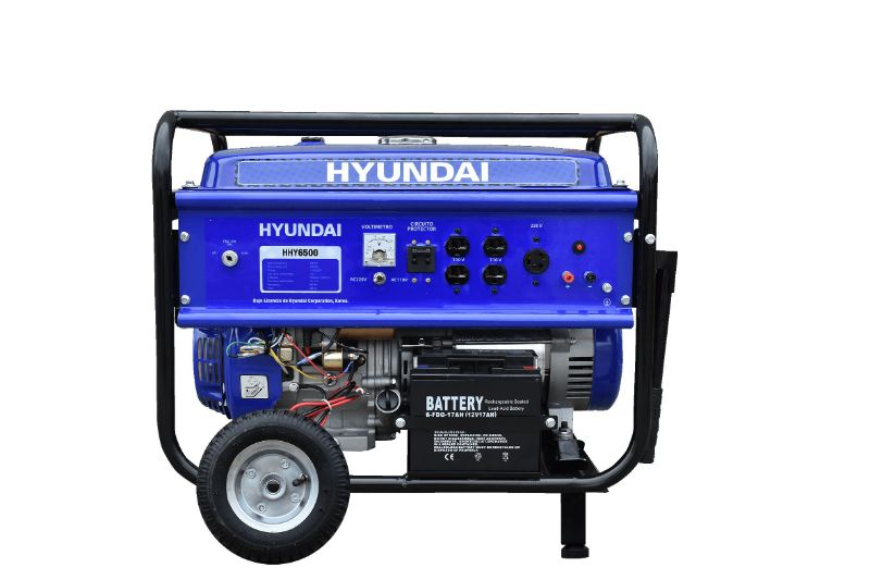 Generador portátil con motor de gasolina de 4 tiempos monofásico marca HYUNDAI de 16 hp con arranque Eléctrico.